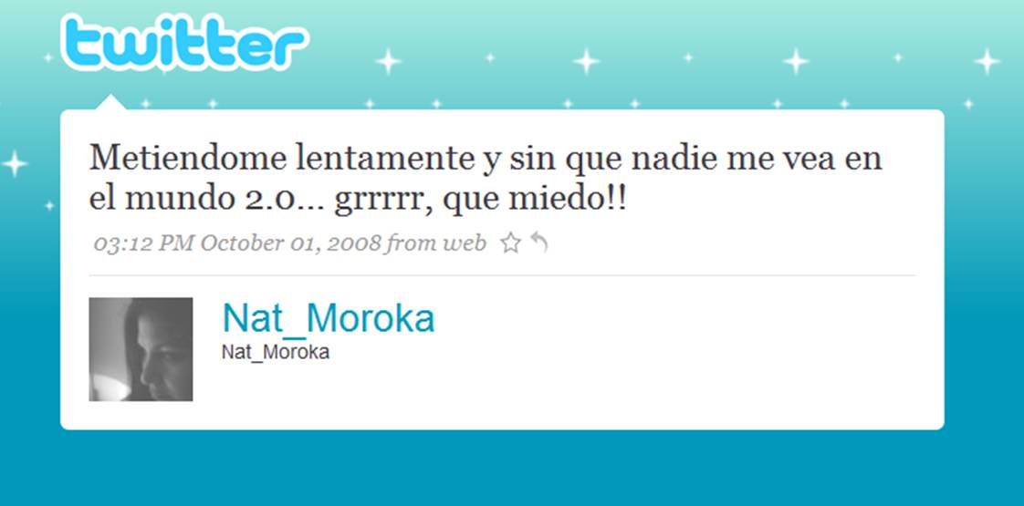 A principios de la semana Natu, mi esposa, me preguntaba acerca de Twitter, «¿cómo tengo que hacer para abrir una cuenta?», minutos después me sorprendía twitteando: