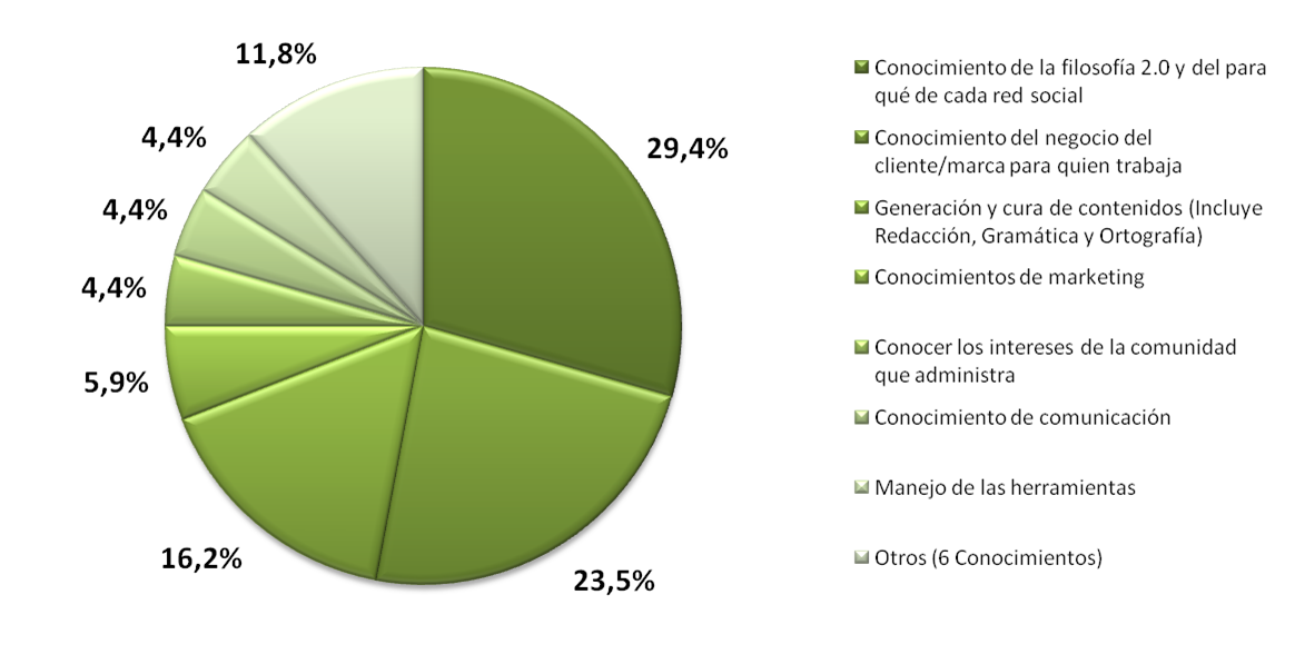 - 29,4% – Conocimiento de la filosofía 2.0 y del para qué de cada red social