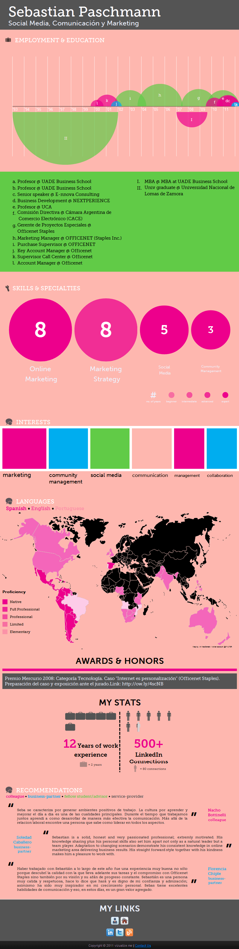 Muy interesante la posibilidad de armar tu CV a modo de infografía que nos brinda Visualize.me con unos pocos clics, y tomando como base el CV de LinkedIn podés personalizar tu CV de una manera amena y simple de leer.